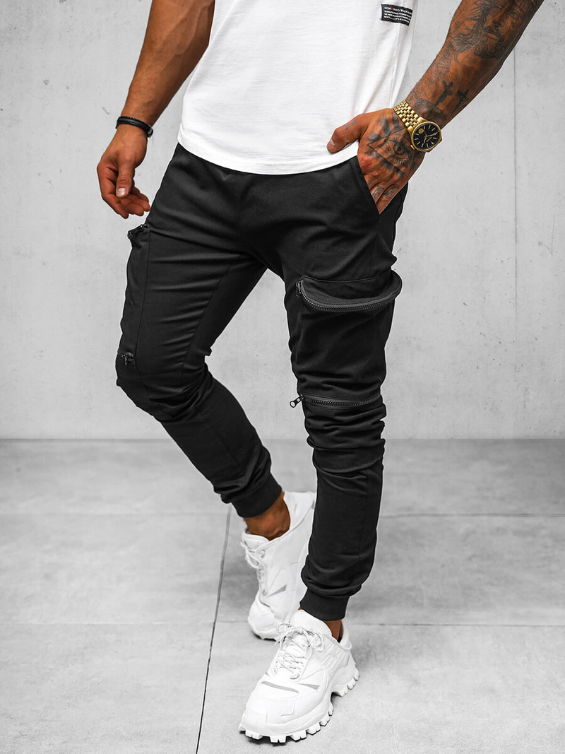 Muške chino jogger hlače crne OZONEE O/475