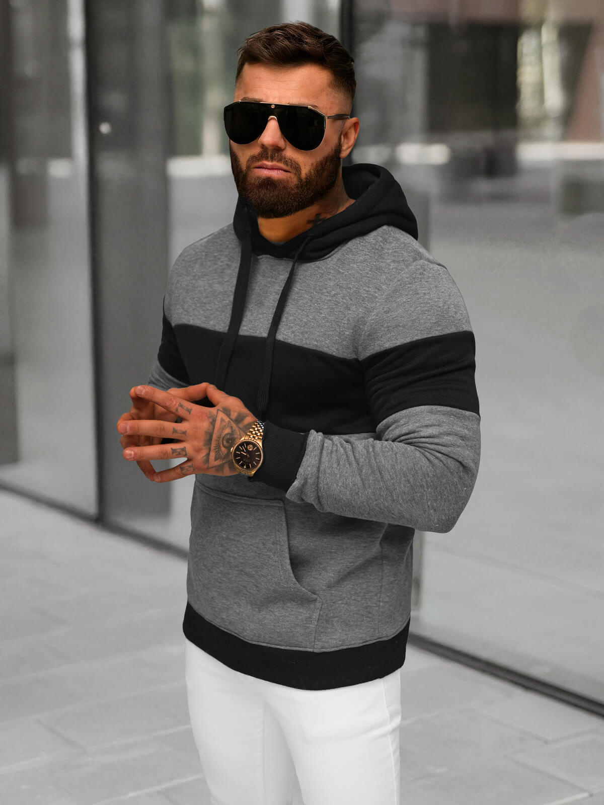 Muška dukserica s kapuljačom grafitna OZONEE JS/8B1313/5