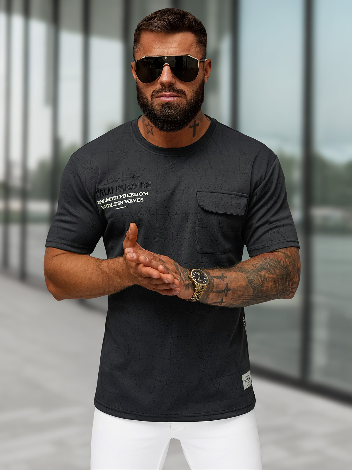Muška Majica Crna OZONEE O/QQ1530