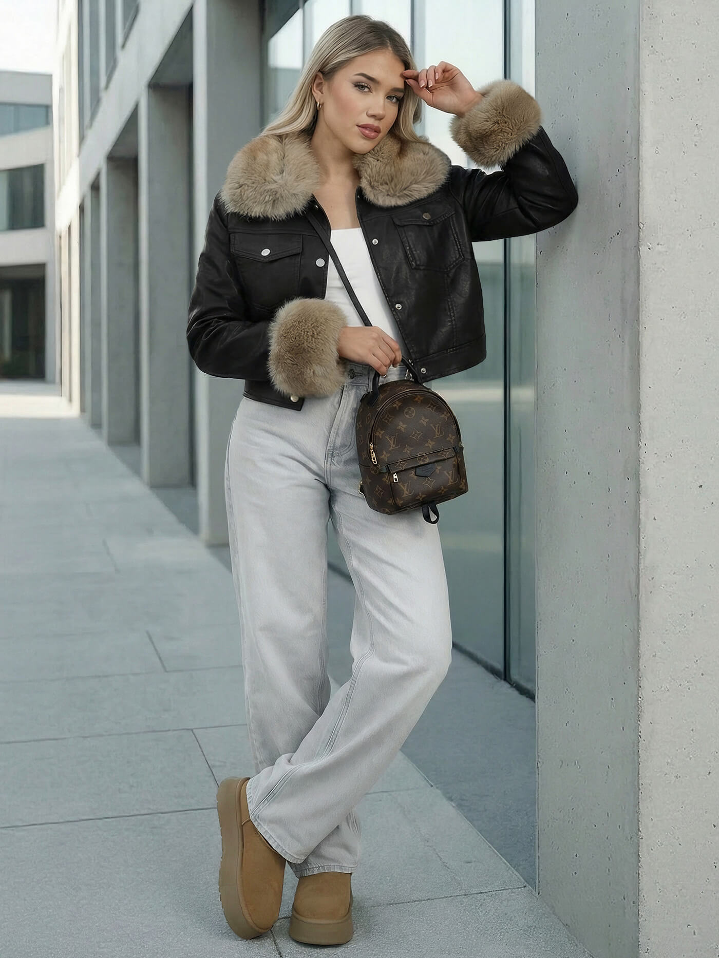 - Ženska jakna od materijala koji imitira kožu